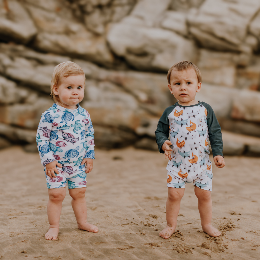 Make a splash with our Shark Long-Sleeve swimsuit, designed for little water explorers who love fun, fearless style! Featuring bold shark prints and a sleek design, this swimsuit brings excitement to every pool day or beach adventure.
